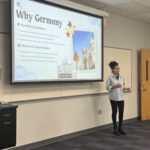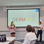 At 12:30 p.m., our activity hour started. For this, we had prepared presentations about German clichés, beer brewing, and studying abroad in Germany. We even got some insider information from Amina, who is studying in Germany as an international student herself. After that, we had some time to discuss with the American students, talking about their expectations and what they think about Germany now. Some of them even told us that they felt much more motivated to learn German after meeting us. After the presentations and lively discussions, we went back to attend a few more classes.