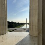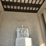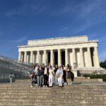 Fueled up, we took the Metro at 7:00 a.m., catching the city bathed in golden morning light. D.C. at that hour is oddly peaceful: no honking, no crowds, just sunlight bouncing off the marble. Our first stop was the Lincoln Memorial, and wow—it’s huge. Standing in front of Abraham Lincoln’s 6-meter-tall statue. It was a goosebumps moment. Many of us remembered the scene from „Night at the Museum“ where Lincoln gets up and starts talking.